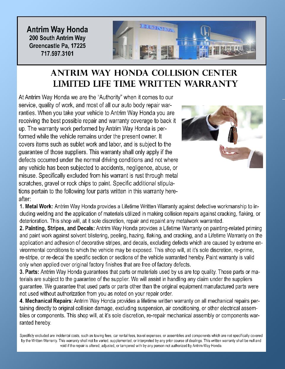 Collision Center Lifetime Warranty